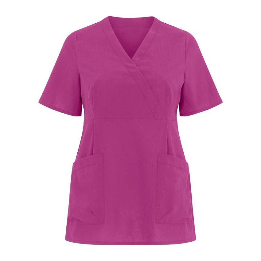 V-kaelusega ja eest hõlmiklõikeline tuunika. Perfect Curve. Lühikesed varrukad. Alt laienev mudel. Kaks suurt lõõtstaskut. Taga vöökohal on kumm, mis annab hea istuvuse. Suuruse M selja pikkus on umbes 80,5 cm.